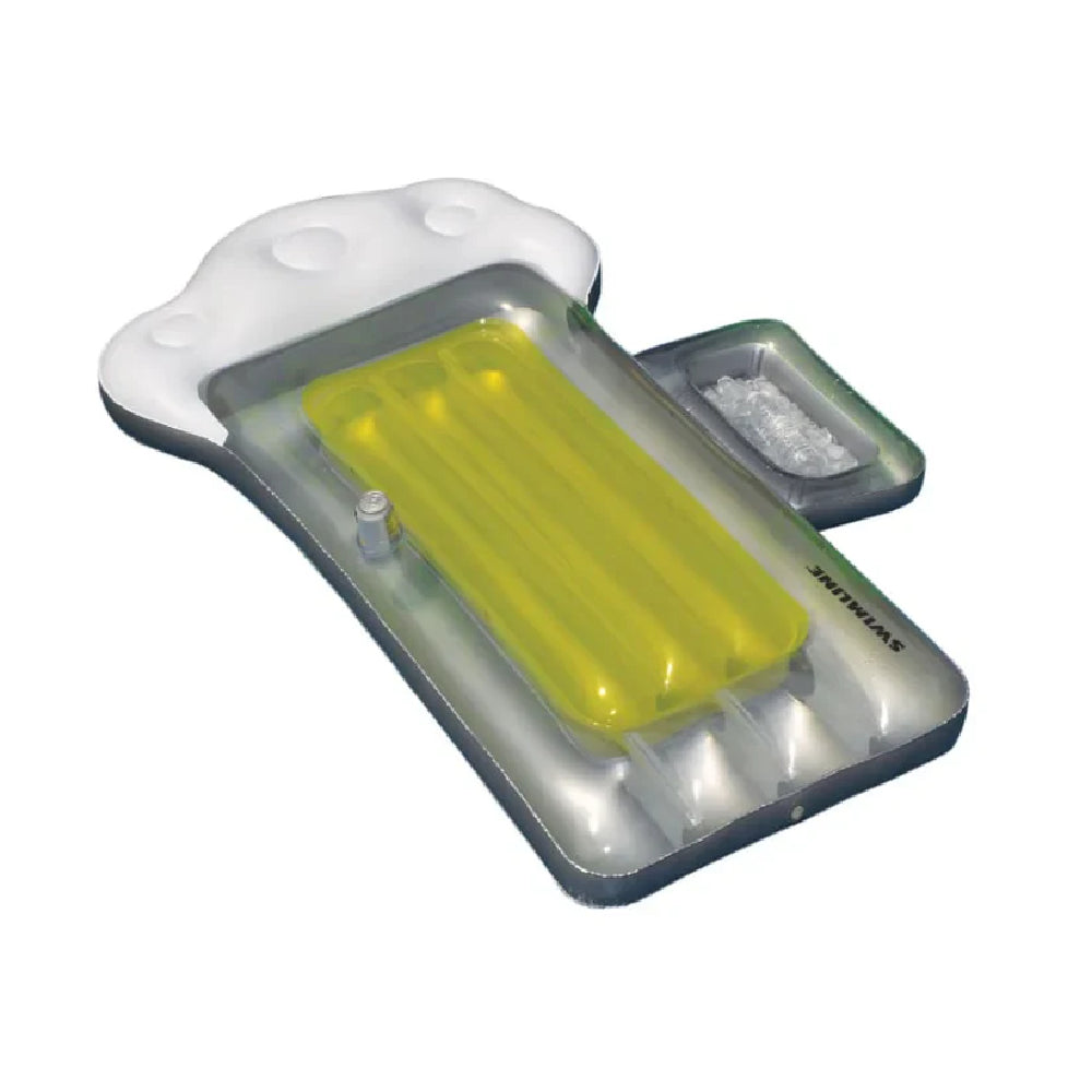 Swimline beer mug float provides comfort, a place for your drink, and an ice chest for refills. This float is in the shape of a beer mug. Along with a cup holder, the mug handle doubles as a ice chest. You are sure to be envied as you lounge on the water, always with a chilled beverage in reach. Made from 12-gauge PVC. 2 pack.