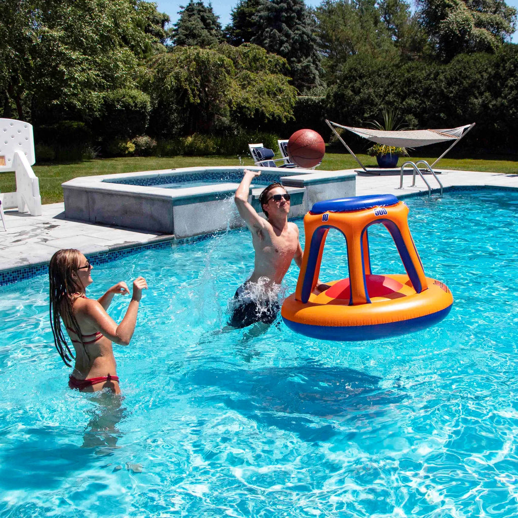 Bring your game to the pool this summer. Gather all your friends for a fun game of basketball in your pool. Convert your shallow end into an aquatic basketball court where you make all the rules.